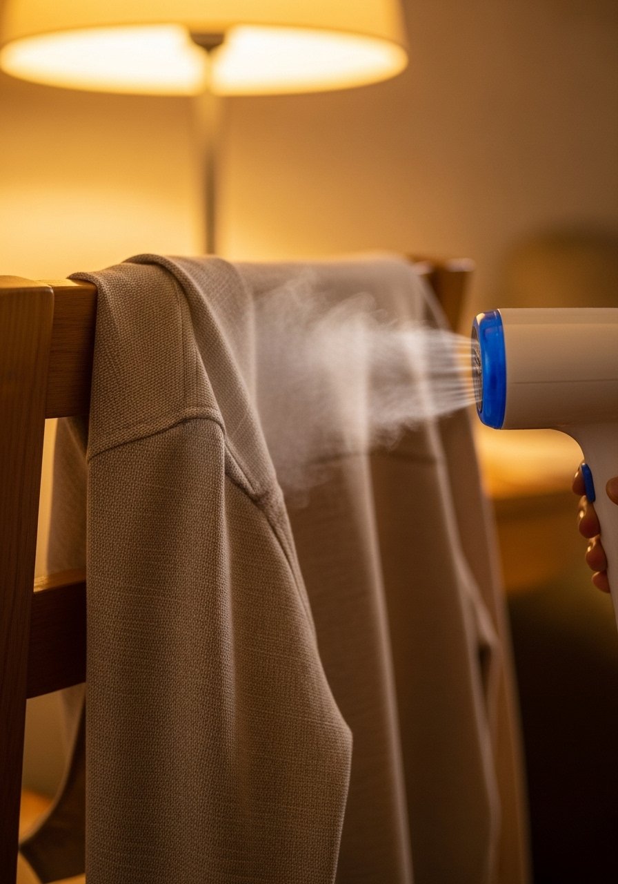 I once lugged a heavy iron; never again. A mini steamer or a wrinkle-release spray smooths clothes quickly without taking space. It keeps outfits photo-ready for meetings or nights out.