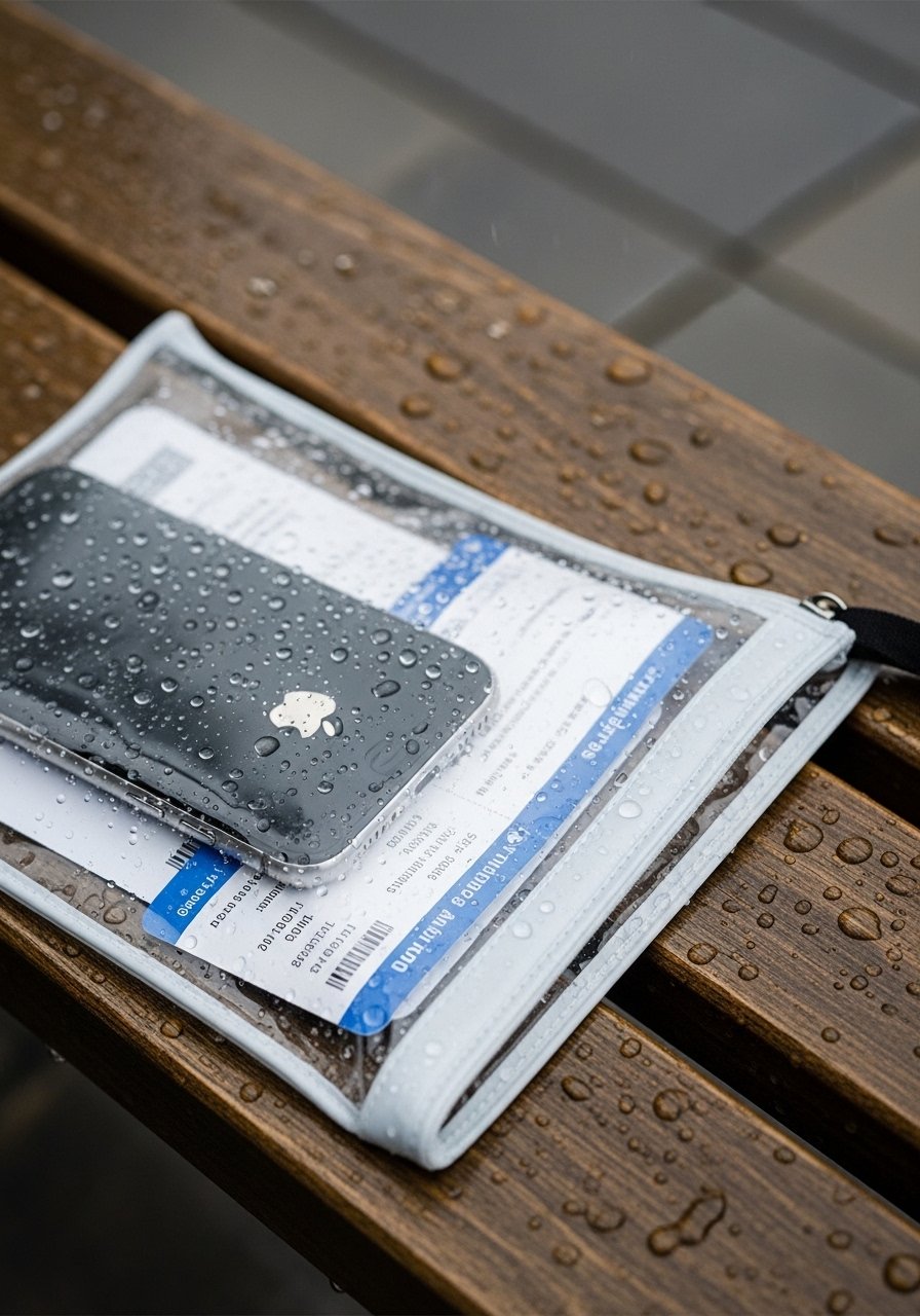 I use a waterproof pouch for my phone, receipts, and paper maps on rainy days. It keeps electronics dry on ferries and during sudden downpours.