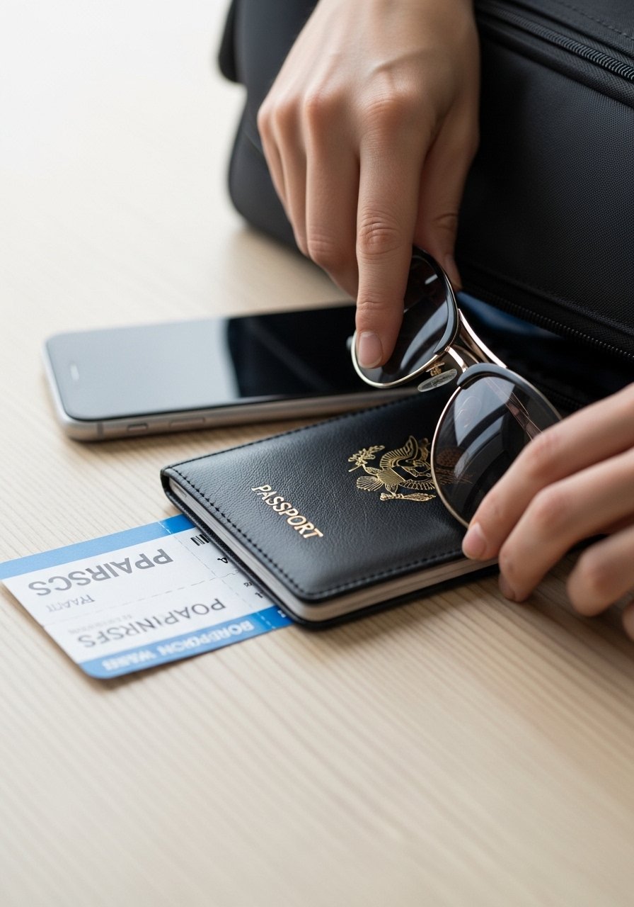 I pick the things I reach for in the first ten minutes off a plane or out of a taxi. Passport, phone, boarding pass, keys, sunglasses. They go in the outer pocket or a slim passport wallet so I don’t unzip the whole bag.