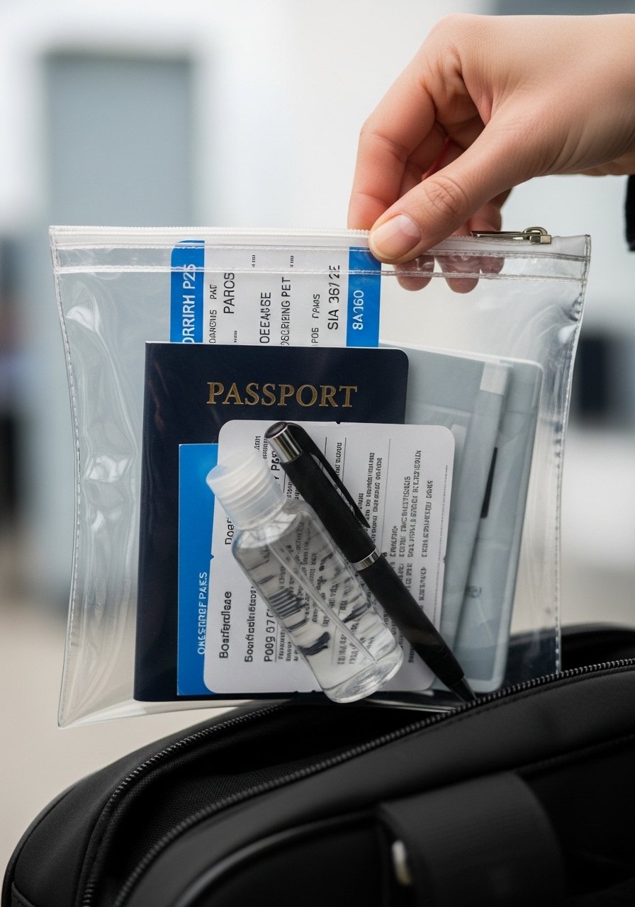Mistake to avoid: overfilling the clear pouch with unrelated items. Keep it for papers and compliance items only.
